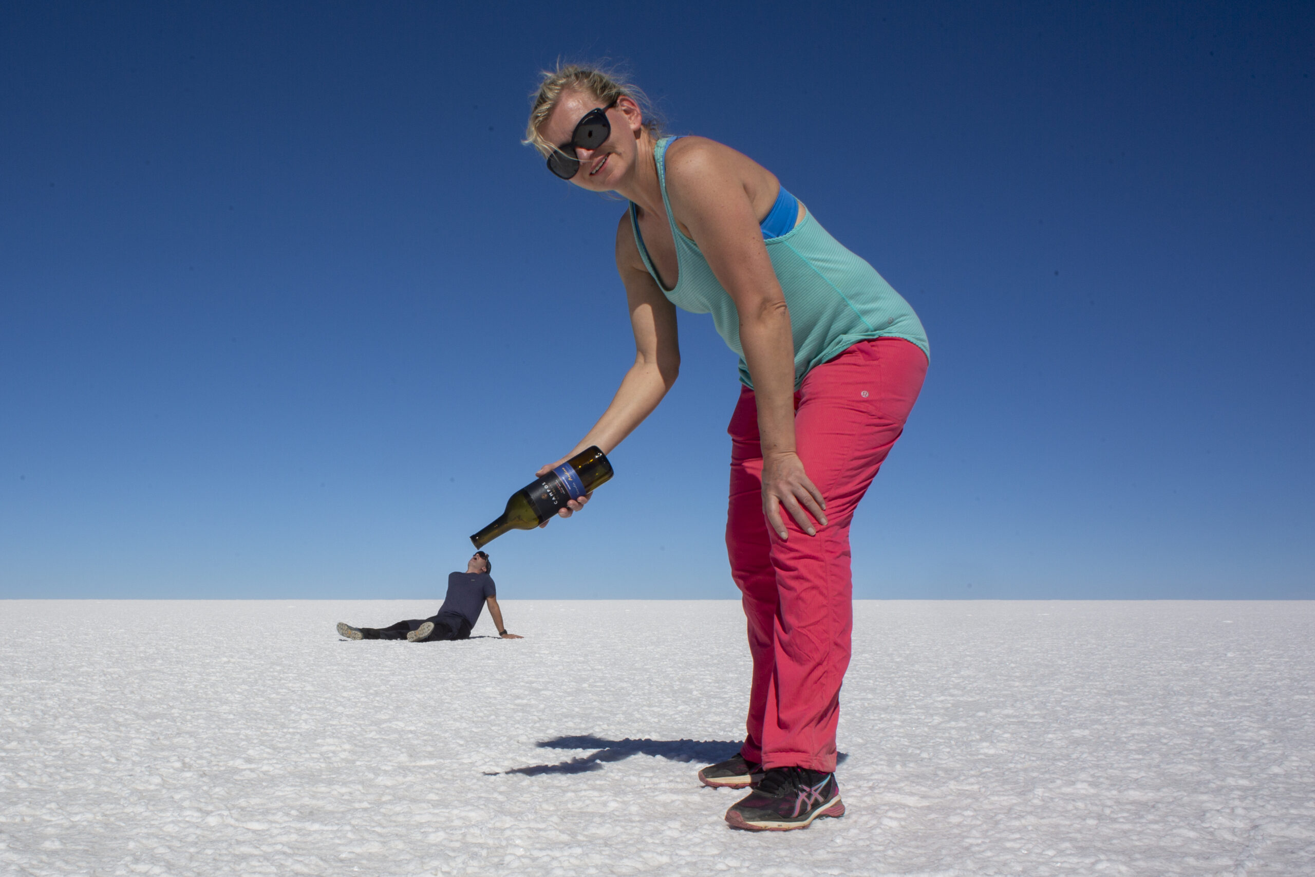 Keď sme autom vošli na samotnú pláň, naše pocity boli neopísateľné. Nekonečná biela rovina na všetky strany, žiadne zákruty ani orientačné body — len čistá prázdnota. Počas obdobia sucha je povrch tvrdý ako betón, no počas dažďov ho pokrýva niekoľkocentimetrová vrstva vody, ktorá tu vytvára najväčšie prírodné zrkadlo na svete.