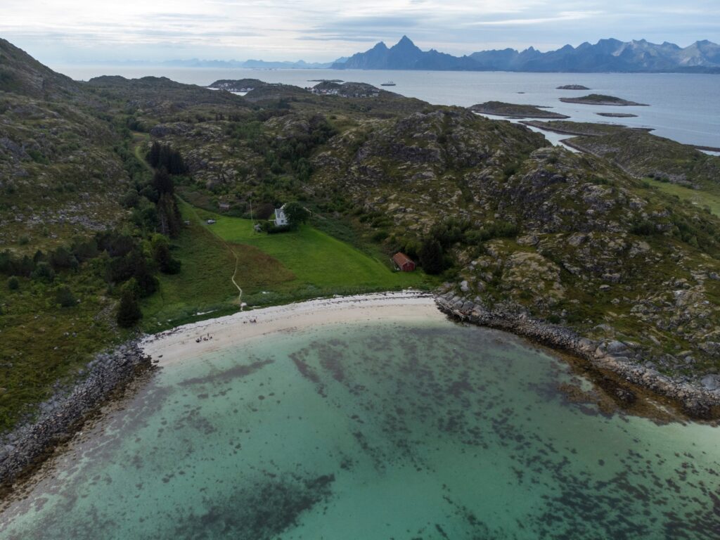 Po asi prvom kilometri vedúcom po poľnej ceste trasa odbočuje doprava a už úzkym chodníkom vedie až na pláž. Niektoré pohľady na pláž v nás na chvíľu vyvolávajú otázku, či sme sa náhodou neocitli niekde v Thajsku. Až pohľad na kopce v pozadí nás rýchlo uistí, že sme stále na Lofotoch, v severnom Nórsku. Po krátkom navnímaní scenérie sa pomaly otáčame a po rovnakej trase sa vraciame späť k autu. Rýchlo smerujeme do prístavu, aby sme stihli trajekt späť do Stamsundu.