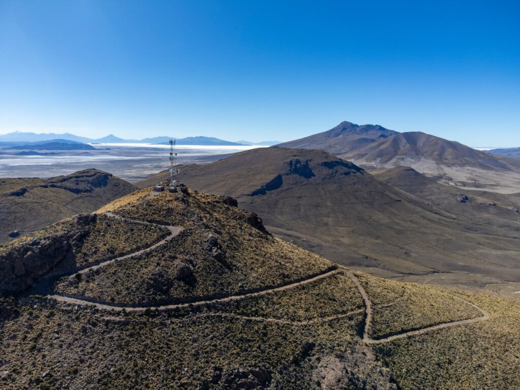 Samozrejme, chôdza po strmej ceste v týchto výškach nie je úplne zadarmo, ale s pravidelnými prestávkami nakoniec posledné výškové metre zvládame bez väčších problémov. Z vrcholu sa nám naskytá krásny výhľad. Mestečko Llica máme ako na dlani. Stačí sa však trochu pootočiť a na horizonte sa stále jasne črtá aj sopka Tunupa, aj keď je od nás vzdialená viac ako 50 km. Pohľad na sever prezrádza prítomnosť ďalšej soľnej planiny, ktorej uprostred dominuje jazero Coipasa.