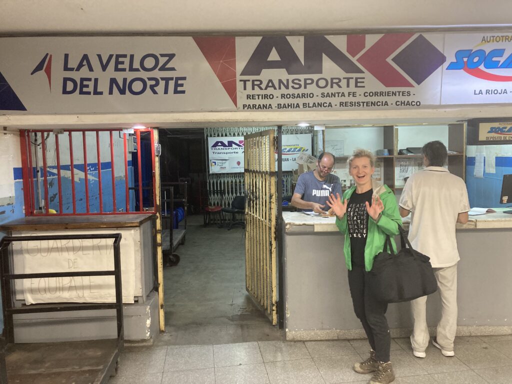 Ďalšie kroky vedú do Western Union, kde si za výhodný kurz vyberáme naše prvé argentínske pesos. Odtiaľ sa vraciame späť na autobusovú stanicu k okienku, kde si vyzdvihujeme vopred rezervované lístky.